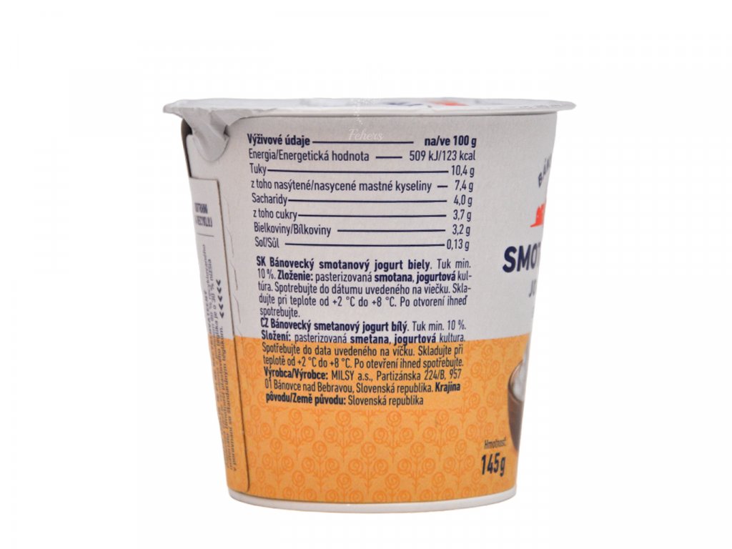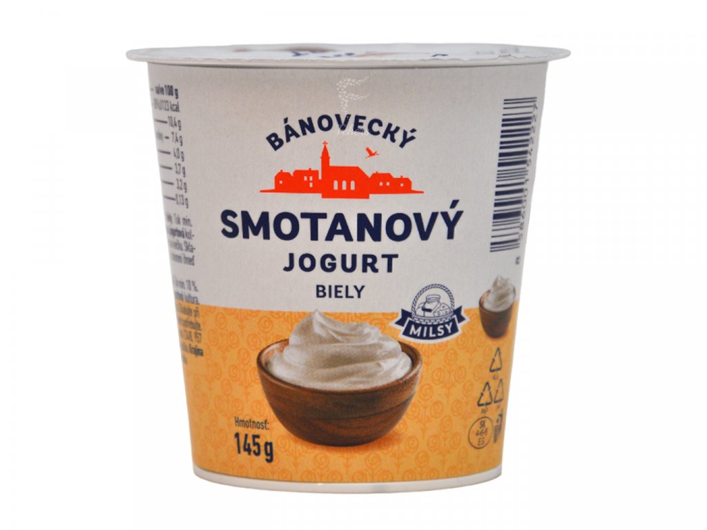Popis produktu, Bánovecký smotanový jogurt biely 400 g - Kyslomliečny výrobok obohatený jogurtovou kultúrou.Značka: MILSY a.s., Hmotnosť, Brutto: 417 g,Zloženie,...