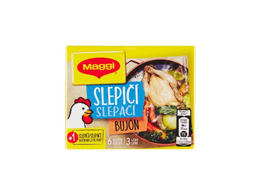 Popis produktu, O MAGGI: My v MAGGI veríme, že varenie z čerstvých surovín, byliniek a kvalitného mäsa je to najlepšie, čo si môžete dopriať. Zároveň vieme, že mnoho z vás nemá vždy možnosť alebo čas si takéto jedlo pripraviť. Preto už viac ako 130 rokov prinášame produkty, ktoré môžu varenie uľahčiť a dodajú vašim pokrmom skvelú chuť. MAGGI, všetko dobré začína varením.6 kociek / 3 litreSlepačí bujón. Dehydratovaný výrobok.Počet použití: Počet porcií - 15Slovenská republikaMarketing produktu, - Slepačí bujón dodá chuť a vôňu slepačieho mäsa pri príprave vašich jedál. - Ideálne na dochutenie jedál z mäsa, zeleniny alebo na prípravu polievok a omáčok. - Balenie, vďaka ktorému budete mať váš bujón na dochutenie vždy po ruke. - V balení nájdete 6 kociek. Alternatíva ku klasickým vývarom preverená časom! Skvelá chuť v úhľadnej kocke vám v priebehu niekoľkých minút pomôže skvele dochutiť vaše obľúbené jedlá. Využiť ju môžete na prípravu polievok, omáčok, do risotta alebo šťavu k mäsu.Značka, MAGGIHmotnosť, Brutto hmotnosť: 65,Zloženie, Jedlá soľ, palmový tuk, zvýrazňovače chuti (glutaman sodný, 5´- ribonukleotid disodný), kukuričný škrob, arómy, slepačí tuk 1,9 %, sušený kvasnicový extrakt, sušené slepačie mäso 1,3 %, sušená petržlenová vňať 0,5 %, farbivá (obyčajný karamel, riboflavíny), karí korenie, antioxidant (extrakty z rozmarínu), sušený cesnakový koncentrát 0,01 %, maltodextrín, minerálna látka (jodičnan draselný), % - vztiahnuté na obsah zložky v celom výrobkuAlergény, Zeler Môže obsahovať,Obilniny obsahujúce lepok Môže obsahovať,Vajcia Môže obsahovať,Ryby Môže obsahovať,Mlieko Môže obsahovať,Sója Môže obsahovaťAlergény sú vyznačené:TučnéPríprava a použitie, Návod na prípravu: bujón lahodnej chuti získate zavarením jednej kocky (10 g) v 0,5 l vriacej vody.Číselná veľkosť, 10gKrajina pôvodu, SlovenskoDruh skladovania, Pri izbovej teplotePodmienky skladovania, Skladujte v suchu pri izbovej teplote.Typ balenia, KrabicaBuďte prvý, kto napíše príspevok k tejto položke.