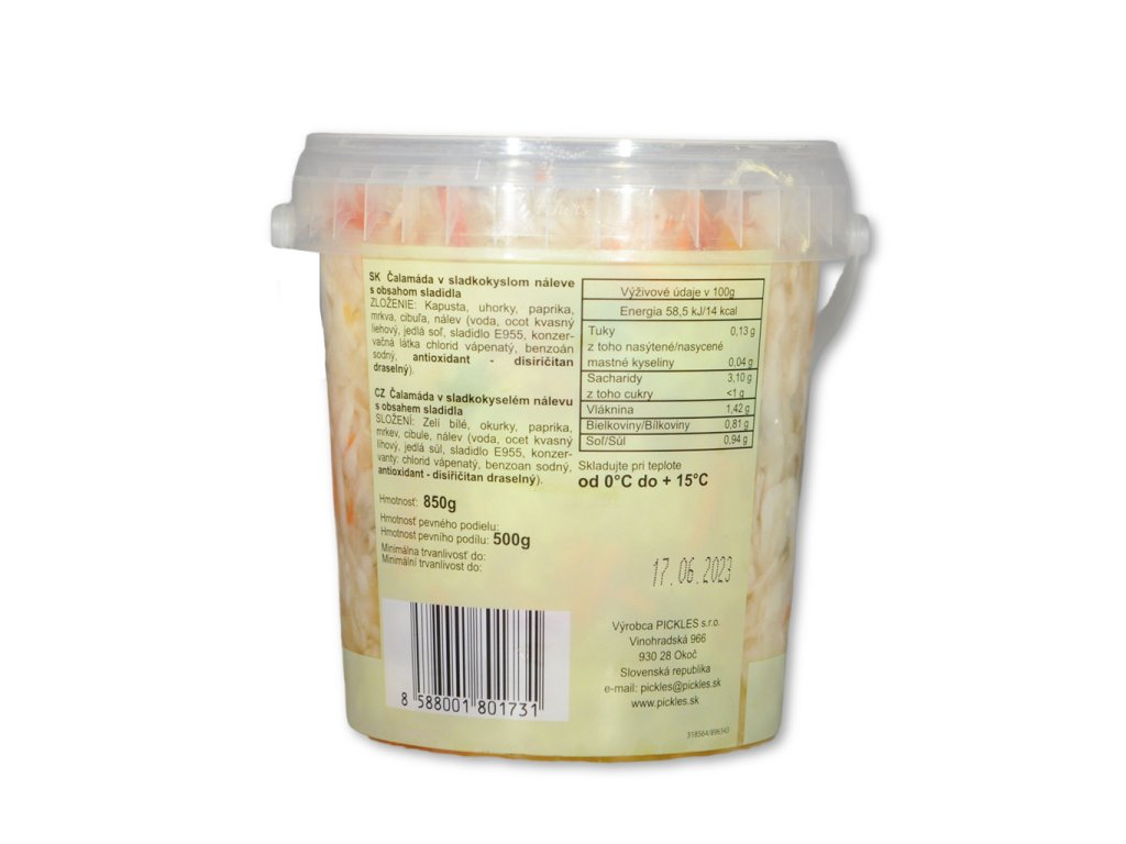 Zloženie: Paprika,voda, kvasný liehový ocot, cukor,jedlá soľ, cibuľa.horčičné semeno, koreniaci výťažok. Nutričné hodnoty: Priemerné výživové údaje na 100g výrobku.Energia...