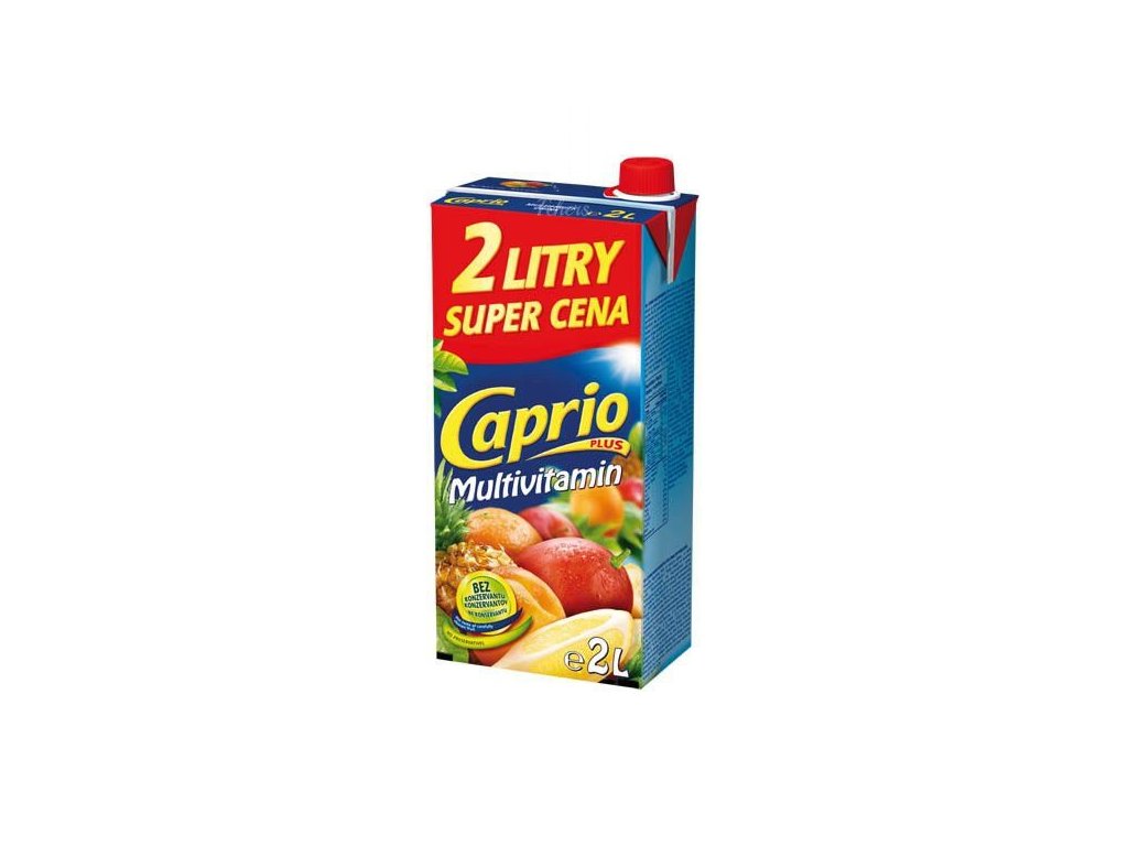 Popis produktu, Bez konzervantov Nesýtený ovocný nápoj vyrobený čiastočne z koncentrátov a pretlakov viacerých druhov ovocia, s cukrami a sladidlami, obohatený o vitamíny: C, E, thiamín, riboflavín, niacín, B6, B12, kyselina pantoténová, kyselina listová, biotín. Pasterizované.Obohatený o vitamíny: C, E, thiamín, riboflavín, niacín, B6, B12, kyselina pantoténová, kyselina listová, biotínVyrobené v EUZnačka, CaprioHmotnosť, Brutto hmotnosť: 2105,Zloženie, Pitná voda, Cukor (D) a/alebo glukózo-fruktózový sirup (G), Šťavy z koncentrátov a pretlaky (4%): ananásu, pomaranča, manga, banánu, maracuje, broskyne, liči, guávy, figy kaktusovej, kivi, limetky, papáje a jablka, Regulátory kyslosti: kyselina citrónová a citran sodný, Vitamínová zmes (vitamíny C, E, thiamín, riboflavín, niacín, B6, B12, kyselina pantoténová, kyselina listová, biotín), Stabilizátory: karboxymethylcelulóza a arabská guma, Sladidlá: E 952, E 954, Farbivá: karotény a beta-apo-8´-karotenal, Aróma, D, G - v závislosti od použitej suroviny: viď potlač v hornej časti obalu, Podiel ovocnej šťavy: 4%Alergény sú vyznačené:TučnéPrídavné látky, Konzervanty: Neobsahuje,Sladidlá: ObsahujePríprava a použitie, Pred otvorením pretrepať.Číselná veľkosť, 2LKrajina pôvodu, Vyrobené v EUDruh skladovania, Pri izbovej teplotePodmienky skladovania, Po otvorení uchovávať v chladničke a spotrebovať do 48 hodín.Typ balenia, Kartón