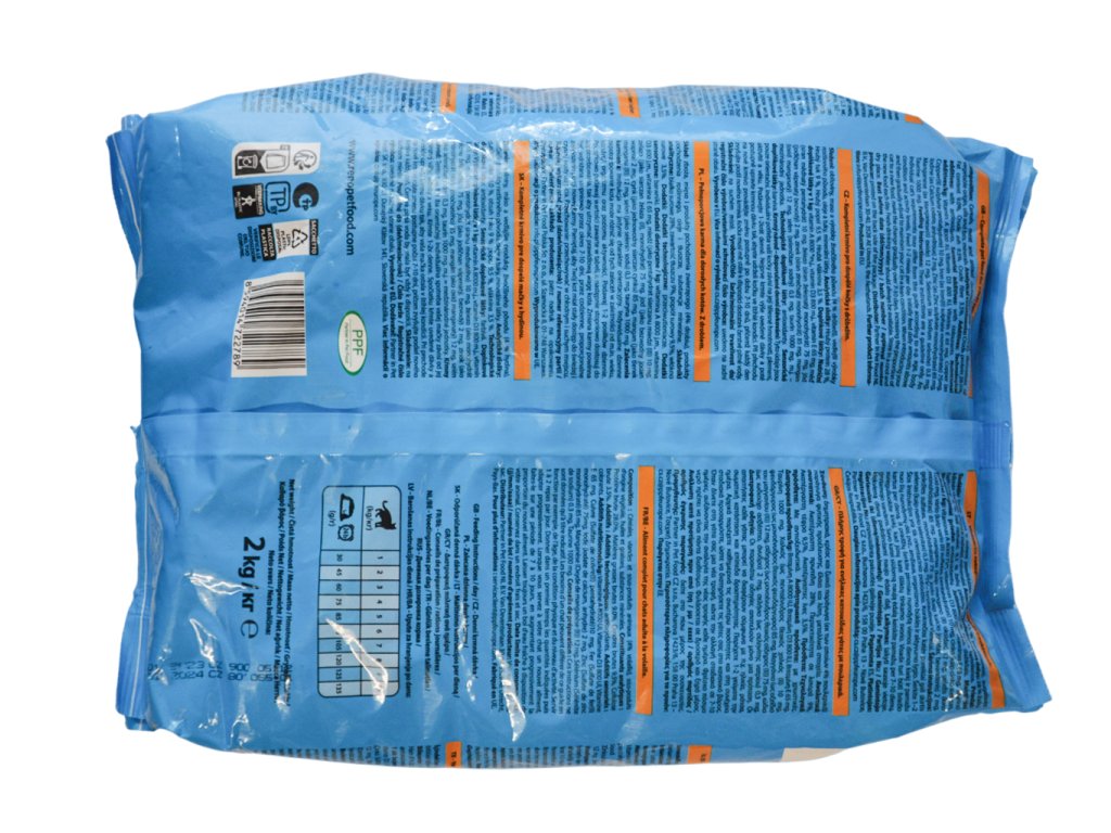 Výživné doplnkové látky na 1 kg: vitamín A 8000m.j., vitamín D3 800m.j., vitamín E 65mg, síra (síran meďnatý pentahydrát) 10mg, železo (síran železnatý monohydrát) 75mg, jód (jodičnan vápenatý bezvody) 2mg, mangán (oxid mangánatý) 12mg, zinok (síran zinočnatý monohydrát) 85 mg, selén (seleničitan sodný) 0,15mg, Taurin 100mg. Výrob obsahuje antioxidanty.