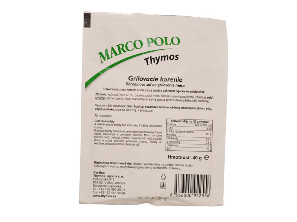 Popis produktu, Zmes korenia na guláš, Marketing produktu, Papriková zmes korenia, ktorá dodá gulášu charakteristickú korenistú chuť a farbu.Značka: Thymos, Hmotnosť, Brutto...