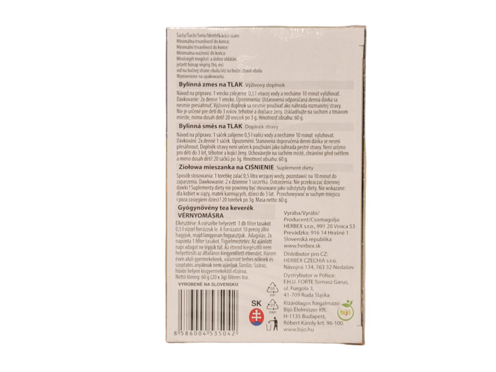 Zloženie: Srdcovník obyčajný ( vňať ),,Hloh obyčajný ( list a kvet ), Lapacho ( kôra ), Imelo biele ( vňať ), Olivovník európsky ( list ), Jablčník obyčajný ( vňať ).
