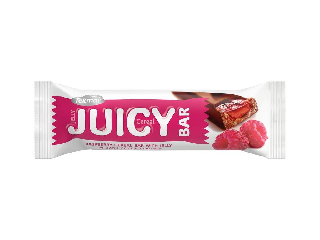 Popis produktu, Cereálna tyčinka s malinovým želé v tmavej kakaovej poleve.Vyrobené na SlovenskuZnačka, TekmarHmotnosť, Brutto hmotnosť: 39,Zloženie, Malinové želé 30% (glukózový sirup, fruktózový sirup, cukor, malinový koncentrát 4%, farbivo, želírujúca látka: pektín, regulátory kyslosti: kyselina citrónová a citran sodný, aróma),Tmavá kakaová poleva 25% (cukor, hydrogenovaný palmový tuk, kakaový prášok 16%, emulgátor: sójový lecitín, aróma),Glukózový sirup,Cereálie (celozrnná pšeničná múka, ryžová múka, cukor),Sójové vločky,Nehydrogenovaný palmový tuk,Hrozienka 2,5% (hrozienka, palmový olej),Pomarančová kôra 2,5% (antioxidant: oxid siričitý),Sušené mlieko odstredené,Kakaový prášok,Emulgátor: sójový lecitín,Soľ,Regulátor kyslosti: kyselina mliečna,ArómyAlergény, Obilniny obsahujúce lepok Obsahuje,Vajcia Môže obsahovať,Mlieko Obsahuje,Orechy Môže obsahovať,Arašidy Môže obsahovať,Sezam Môže obsahovať,Sója Obsahuje,Oxid siričitý/siričitany Obsahuje,Pšenica ObsahujeAlergény sú vyznačené:TučnéPríprava a použitie, Výrobok je určený k priamej spotrebe.Číselná veľkosť, 40gKrajina pôvodu, SlovenskoDruh skladovania, Pri izbovej teploteMaximálna teplota °C 25Podmienky skladovania, Skladujte v suchu a pri teplote do 25° C.Typ balenia, Tepelne utesnenéDiskusia