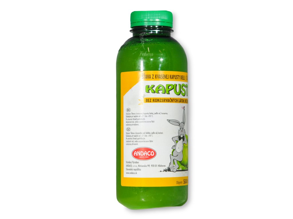 ZLOŽENIE: nálev z kvasenej bielej kapusty 98% (nálev z kvasenej bielej kapusty, koreniny, soľ), pitná voda, konzervačná látka: benzoan sodný.ALERGÉNY: Neuvádza sa