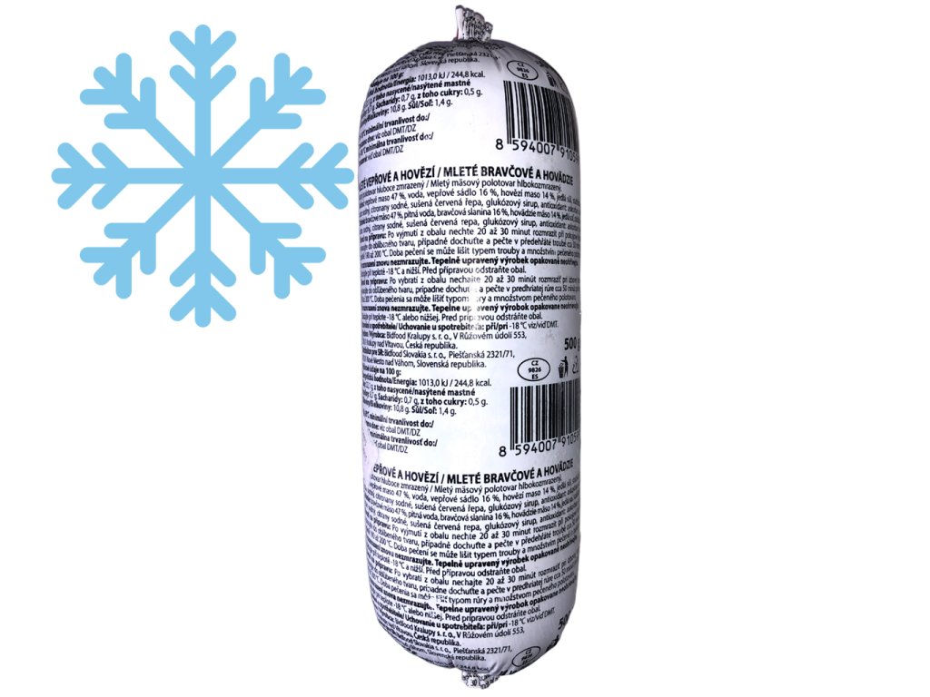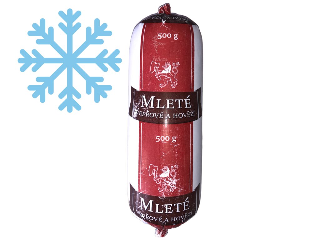 Hlbokozmrazený mäsový výrobok, mleté mäso mix.Hmotnosť: 500 g