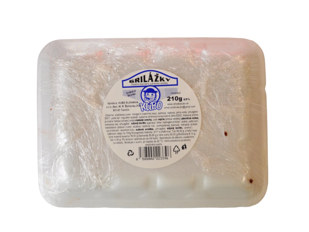 POPIS PRODUKTU: Sladké jemné pečivo ZLOŽENIE: CESTO 1: pšeničná múka, rastlinný šlahací krém (voda, čiastočne stužený olej z palmových jadier, cukor, stabilizátory: sorbitol,...