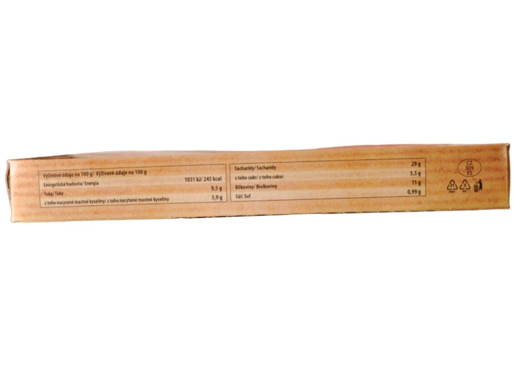 ZÁKONNÝ NÁZOV POTRAVINY: Hlbokozmrazené lístkové cesto ZLOŽENIE Pšeničná múka, voda, zmes z obilnín min. 10% (slnečnica, ľan, kukuričná krupica, pšeničné klíčky, pšeničná...