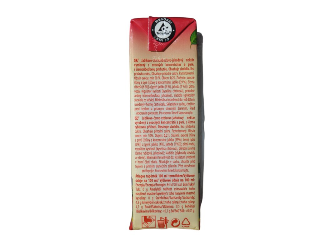 Popis produktu, Bez konzervantov Nesýtený ovocný nápoj vyrobený čiastočne z koncentrátov a pretlakov viacerých druhov ovocia, s cukrami a sladidlami, obohatený o vitamíny: C, E,...