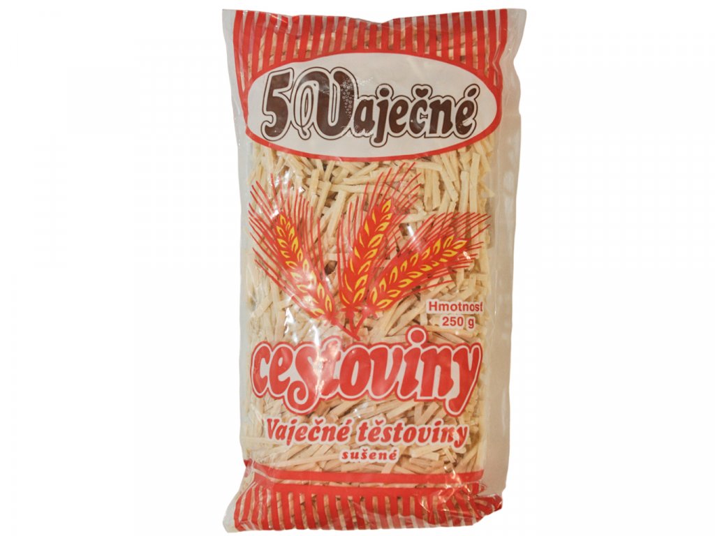 Popis produktu Regulovaný názov produktu Pšeničné sušené vaječné cestoviny Zloženie Cestovinárska pšeničná múka, Pasterizovaná vaječná hmota, 36 % /8 vajec na 1 kg múky/, Voda,...