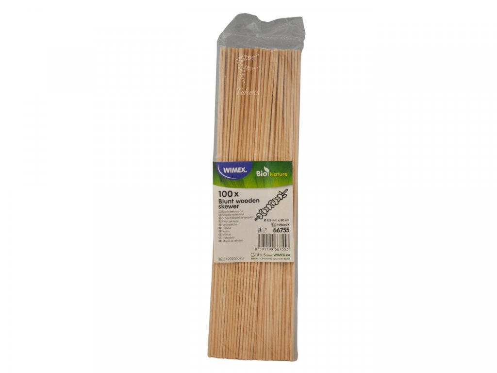 Nezahrotené drevené špajdle, balenie 100 ks, priemer 3 mm, dĺžka jednej špajdle 30 cm.