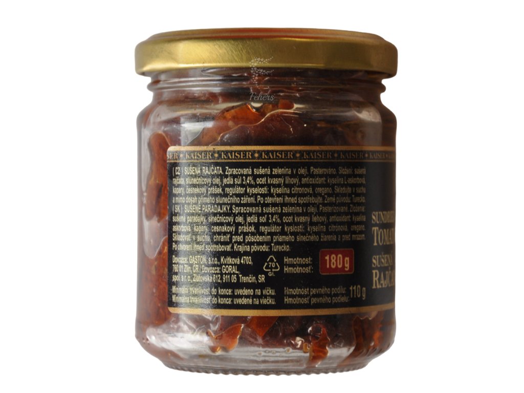 Sušené paradajky krájané. Spracovaná sušená zelenina v oleji. Pasterizované.