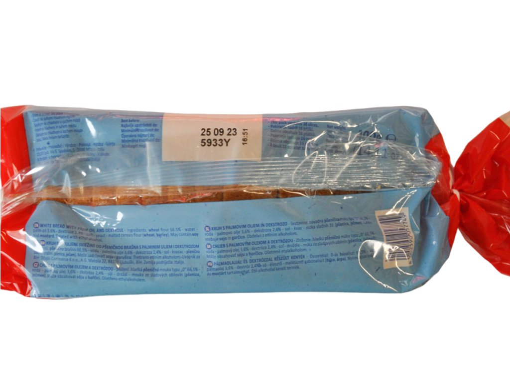 Pšeničný toastový chlieb so slnečnicovým olejom a dextrózou.Hmotnosť: 400 g